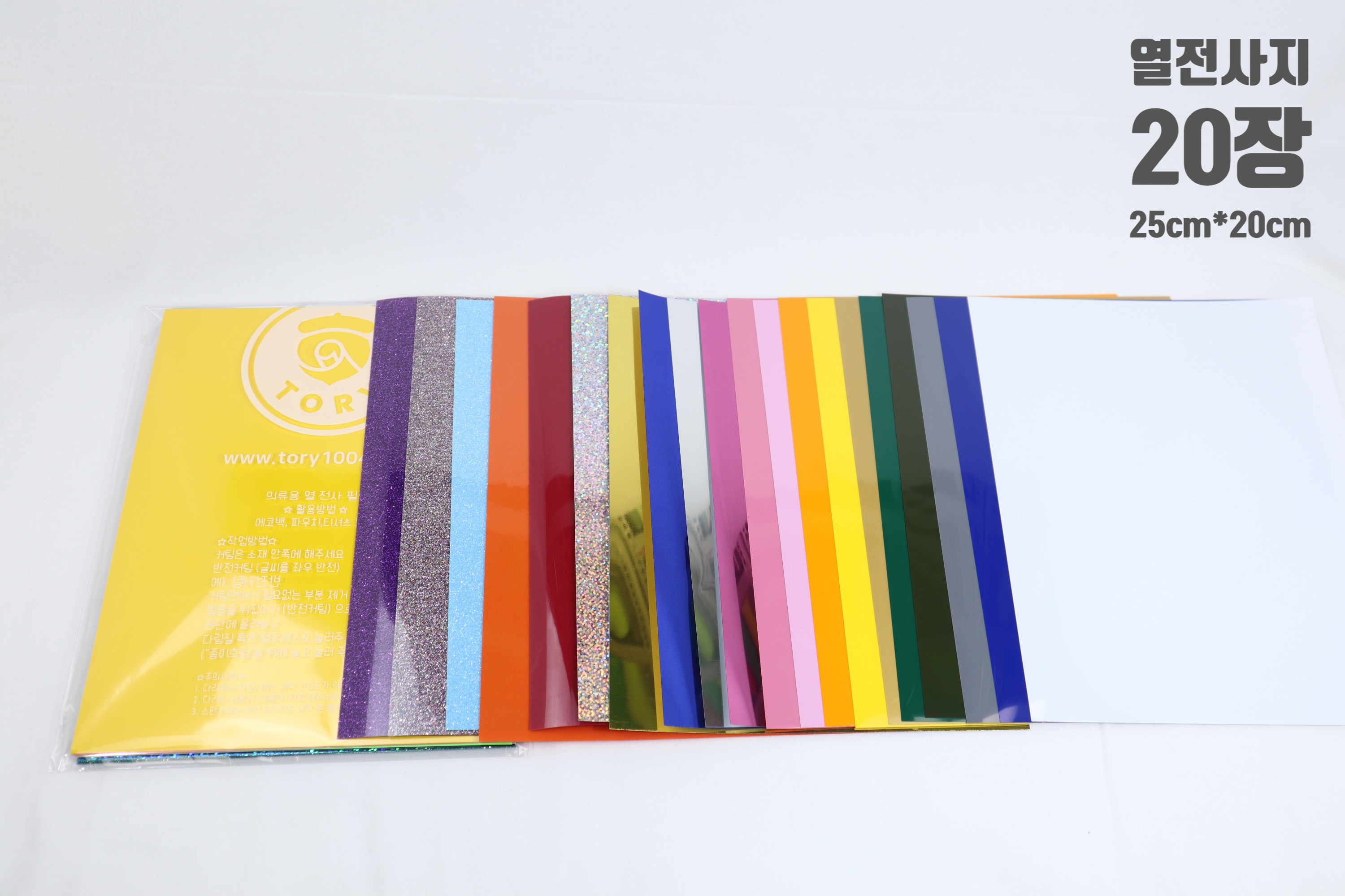 | 낱장열전사지 | 20장 | 25cm * 20cm 낱장 컬러 랜덤구성 (반짝이는 면(패트필름있음/ 다림질하는 곳) 반대 면에 작업) |